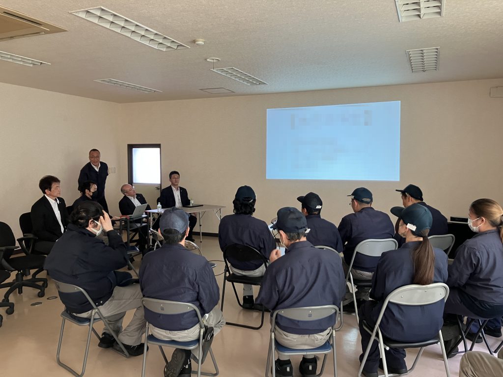 今年度当社が目指す方針が説明され、従業員も真剣に聞き入っておりました。